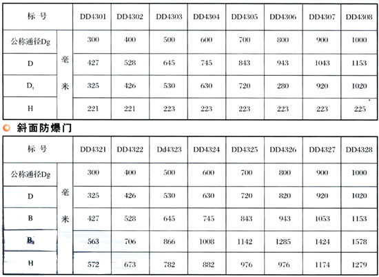 防爆门分膜板式和重力式两种类型。 膜板式防爆门又分圆形防爆门、斜面防爆门、圆形带活动短管防爆门、400×600带活动短管防爆门,通常布置于热风送粉管道上,斜面防爆门通常布置于户外。带活动短管防爆门布置于煤粉仓系统。重力防爆门有水平布置和垂直布置两种,主要用于烟道。防爆门的作用是当煤粉受热膨胀时,造成系统压力过高,气流冲破膜板或顶开重力盖而泄压,达到保护设备和管道的目的。该系列防爆门皆按照74DD标准(D-LD2000标准)制作。